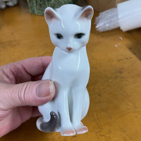 Kat, Royal Copenhagen, Royal Copenhagen 507 (B&G 2507) stående kat 2 sort 14 cm høj 2 små mærker under glasuren på ryggen ( se billede ) uden skår