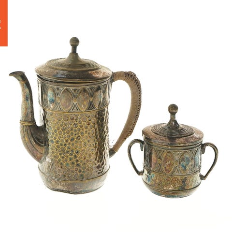 Retro tekande sæt i stål, Der er her tale om en lækkert retro tekande sæt i poleret stål bestående af kande, sukker skål og flødekande. Hollandsk produceret og stemplet: