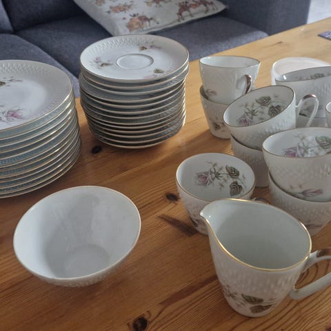 Porcelæn, Spise og kaffestel, Edelstein rose, Kaffe og spisestel sælges.