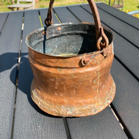 bøtte, kobber, 80 år gl., kobber bøtte med låg,