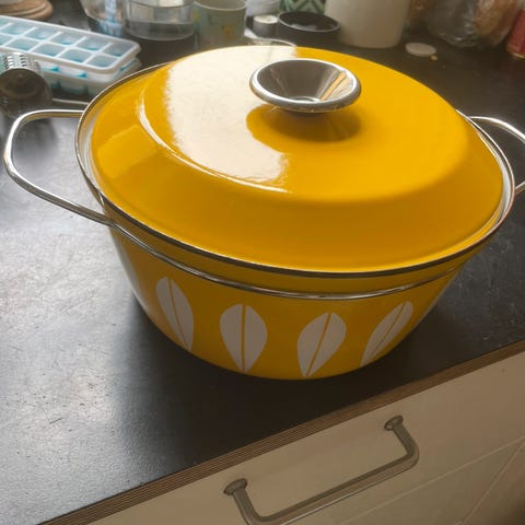 Sort Lotus gryde, Cathrineholm, Sjælden, sort gryde fra norske Cathrineholm - “Lotus” af Grete Prytz-Kittelsen. Diameter 27 cm og 9 cm høj uden låg - ret så fin stand ! Pris 1000 kr.