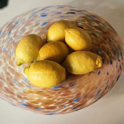 Glas dekoration, Hay, Fin glas halv kugle med fuglemotiv. Købt i Hay.
