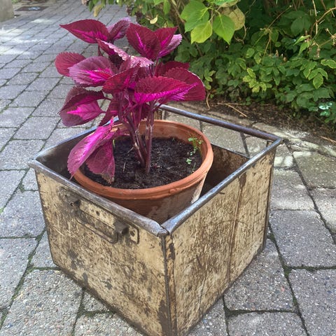 Gammel, fransk jernkasse / skuffe af jern med håndtag.