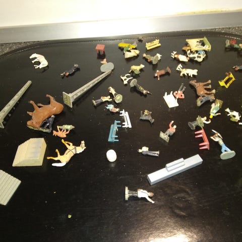 Jeg vedlægger et stykke klar plast med Godset, så kan man lime godset fast på plasten. Ellers kan de godt rystes rundt, og man undgår at lime dem fast på vognen. Se det næstsidste foto