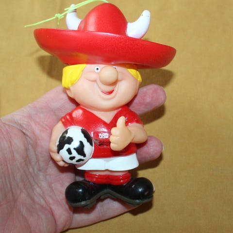 Fodbold, Fodbolddommer skulptur figurer dukke i blød og bøjelig gummi . Gl vintage i fin stand, 16 cm høj