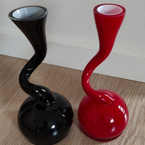 Vase, Swingvaser, 2 stk. swing vaser i mørkeblå og mørkegrøn glas i perfekt stand 60 cm