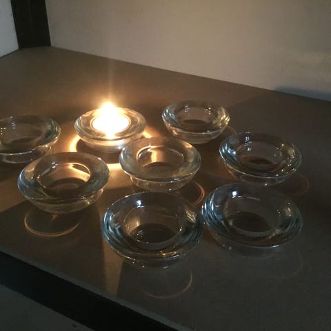 Lyse stager, To høje brugte glas lysestager, til fyrfads lys. H= 45,2cm