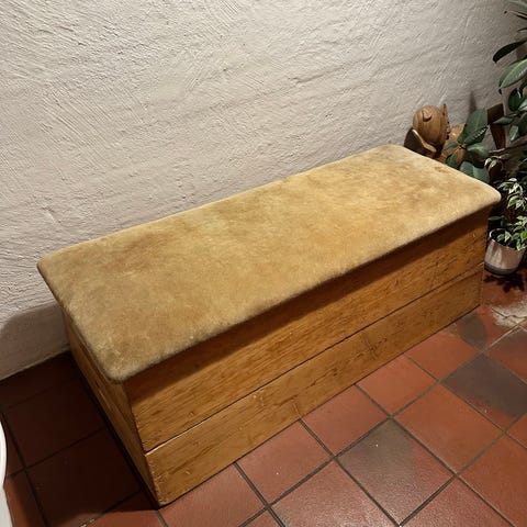 Andet, Ældre gymnastik buk - almindeligt patina. Den kan justeres i højden