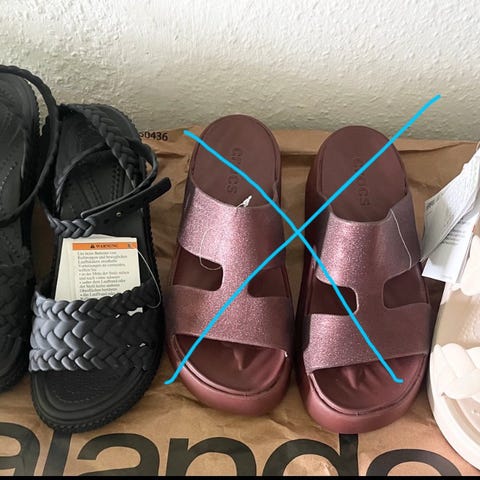 Sandaler, Crocs, str. 42, Ubrugt, 3 stk. sandaler. Sort klip klap nye, aldrig brugt, sort/gul Crocs brugt 2-3 gange, sort smutters str. 41 følger bare med. Samlet pris kr. 300,-.