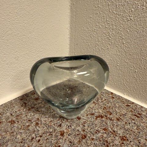 Holmegaard hjertevase 15734, Holmegaard lys blå glasvase Menuet hjertevase 15734. Inskription i bunden. Højde 8 cm bredde 11 cm.