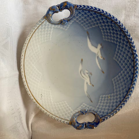 Porcelæn, Kagefad - mågestel med guldkant, Bing & Grøndahl, 26 cm i diameter. Guldkant. Nr 101.