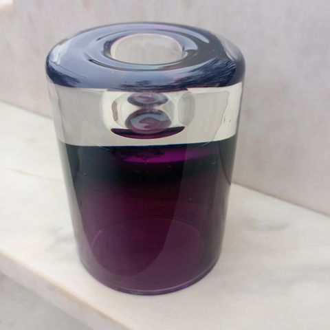 12 cm høj, foroven 15 cm i dia. Gedigen, vejer 970 gr.