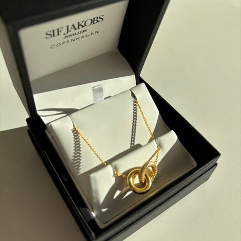 Halskæde, Sif Jacobs, Flot sølv halskæde og ørestikkere med hvide zirkoner fra Sif Jacobs