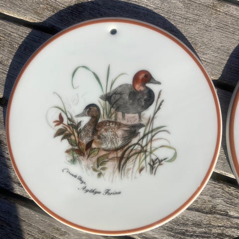 Platte, D2 Trading, Mads Stage, Mads Stage platte i lysegrønne nuancer med en gren og sommerfugle. Ingen skår. Hænger lidt skvæt på væggen (se billedet). Ø: 15,5 cm.