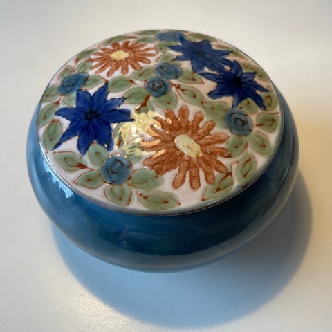 Keramik, Opsats, krukke, Meget elegant og robust keramik opsats i smuk, støvet grøn, nistret glasur.