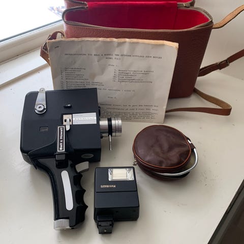 Foto, Gammelt Keystone A-3, No: 60388. 16 mm. Fra 1931. Med læderrem. Brugt, men fin stand.