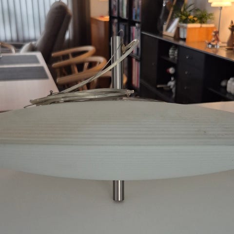 Pendel, Stor smuk hvid blank glas pendel med forkromet ophæng, den er 30 cm i diameter