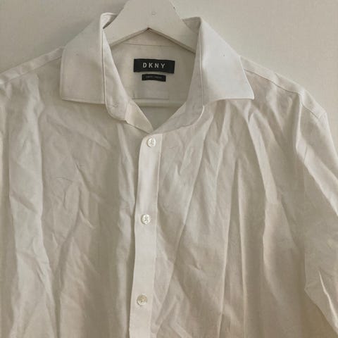 Skjorte, DKNY, str. M, lysblå, Næsten som ny, sommer skjorte herre lys blå stribet DKNY