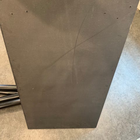 Kirsebærfiner, kan overslibes hvis man ønsker et pænere finish, ellers er det et fint og solidt arbejdsbord