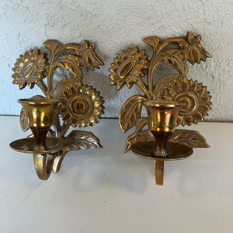 Væglysestager, Et par smukke vægstager i oxyderet messing, brugte, men i rigtig god stand, med ganske lidt brugsspor.