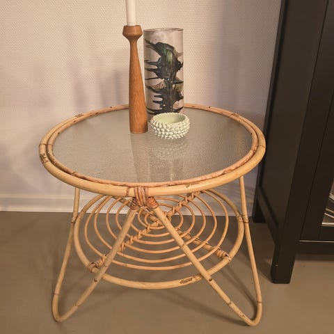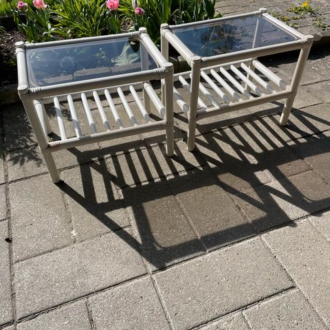 Hvidmalet Bambus Natbord, Lille bord sælges uden skaller :)