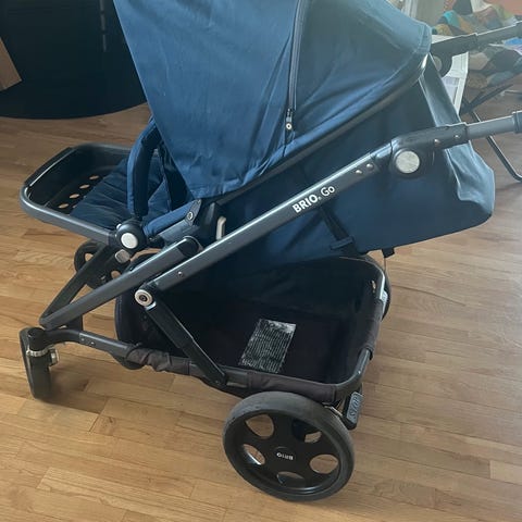 Klapvogn, Brio, Solid klapvogn fra Brio, med indkøbspose og regnslag. Håndtag kan flippes, så barnet kan se begge veje.