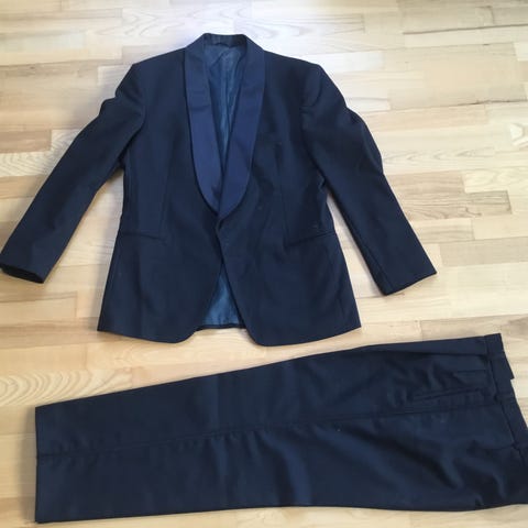 Smoking, Regent, str. L, Sort, Polyester, Næsten som ny, Herre smoking med skærft. C2 104. Kan sendes eller leveres mid betaling af omkostninger.