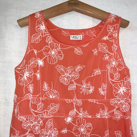 UNO Danmark kjole / spencer / lang tunika str. 1 (M). NY MED MÆRKE. 100% blød hør. Sidser i siderne, to lommer. Bryst 50cm. Længde 83cm. Bredde nederst 51cm. Pink med sort. Vejer 225g.