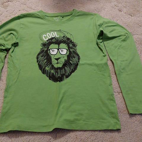 Rød- mørkeblå stribet VRS t-shirt med 4 knapper. str. 134-140 (8-10 år).