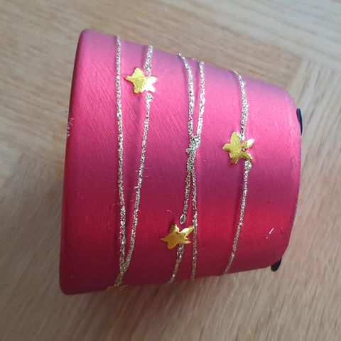 Keramik, Krukke, vase, dekorationspotte, Med Guld og perler, Sød lille firkantet keramik krukke. Gul med guldmønster og gule perler.