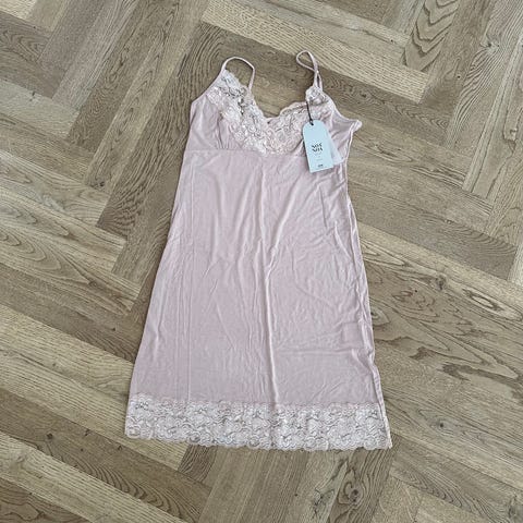 Helt ny underkjole/natkjole i str. S. Farven hedder almond, og er en gylden beige. Super fin. Sender gerne.