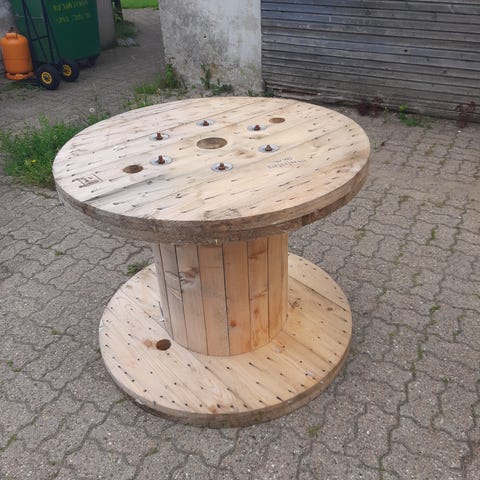 Kabeltromle, Kæmpe kabeltromle Ø158 x H101 cm. Meget (!) tung, I skal være 2-3 mand hvis den skal på en alm. trailer (1 måske 2 kan hjælpe med at læsse her, hvis aftalt i forvejen). Den er blevet vakkelvorn efter at vi rejste den op, så den skal repareres / stabiliseres.