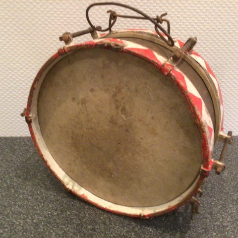 En rigtig flot afrikansk tromme i træ med flotte udskæringer. Den har desværre fået en revne i skindet, men ellers fejler den intet.