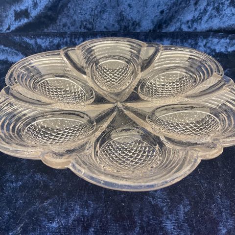 Glas, æggefad, ukendt ældre, æggefad 19 cm i diameter til 6 æg fejlfrit og ældre . sendes for købers regning eller hentes her og porto vil være 43 kr