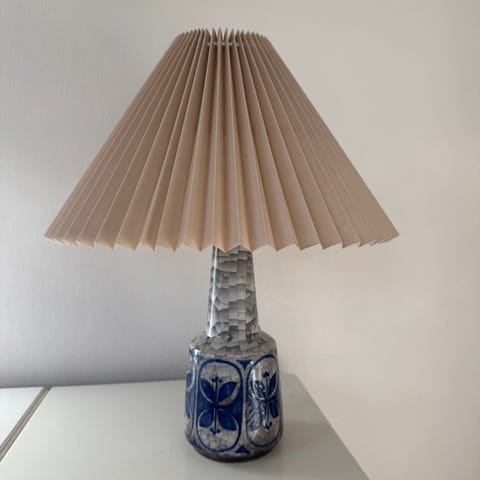 Mål: 28,5 cm høj med pære, selve lampen er 15 cm, breden 10 cm.