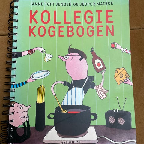 Kollegiekogebogen, Janne Toft Jensen og Jesper Maiboe, emne: mad og vin, Velholdt udgave, perfekt som gave til den unge, der flytter hjemmefra og på kollegium.