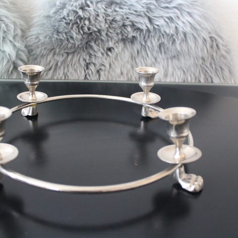 Lysestage, Super smuk og elegant lysestage til det store bord, festlige lejligheder som eksempelvis bryllup eller til højtiderne. Messing -/guldfarvet. Også fantastisk som en hel unik adventsstage til jul. 60x10x48 Fra ikkerygerhjem uden husdyr. Kan sendes eller afhentes i Nørresundby. Rabat gives gerne ved køb af flere af mine annoncer.