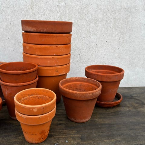 Terracotta krukker med underfad, forskellige størrelser terracotta krukker med underfad: