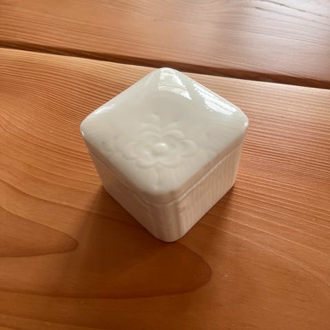 Porcelæn, Bonbonniere, Royal Copenhagen, Velholdt bonbonniere / lågkrukke i musselmalet riflet fra R&C