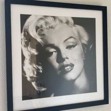 Foto, motiv: Marylin Monroe, b: 65 h: 95, Flot Marylin Monroe i sort hvid, indrammet i sort træramme.