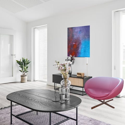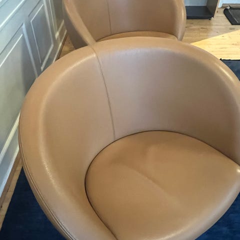 Anden arkitekt, Stokke, Planet, 2 lækre stole i rødt læder, intelligent sitting