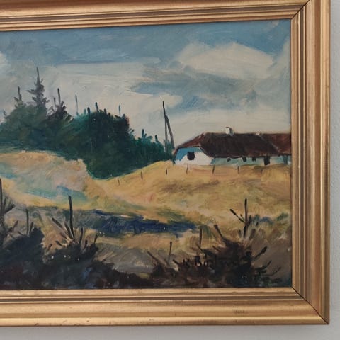 olie på træ, Poul Gerlac, motiv: hunde, b: 40 h: 35, billeder af to dejlige hunde; Wimmer og Nicky malet på massive træplader i 86 og 95