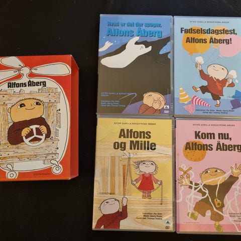 Gunilla Bergström har skabt den lille finurlige Alfons Åberg. Han er efterhånden blevet 50 år, men kan stadig underholde børn i dag. Filmene henvender sig til børn fra 3 år og opefter. Forældrene kan slet ikke lade være med at se med. Selvom tegnestilen og tempoet er anderledes end nutidige tegnefilm, fænger og underholder Alfons Åberg stadig.