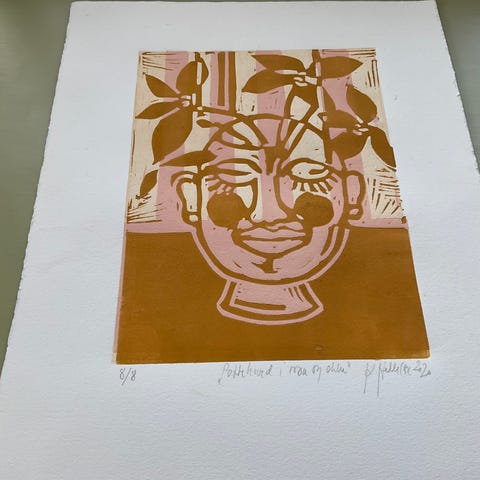 1 - indrammet bag glas tryk på karton af Frida Kanestrøm maleri “ Årstidene II”.