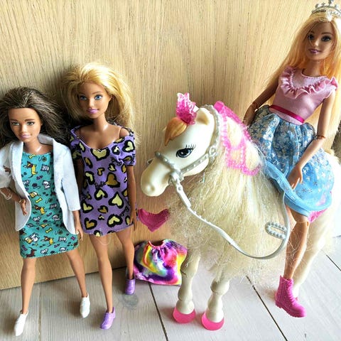 Barbie, Barbie med elektrisk hest, Rigtig flot Barbie med hest. Hesten kan gå, og Barbie kan sættes i et stativ så hun kan longere hesten mens den går rundt.