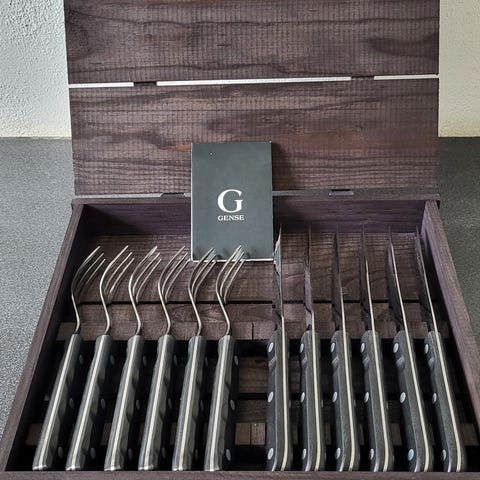 26 dele - 6 knive, 6 skeer, 6 gafler, 4 små teskeer , 4 store teskeer.