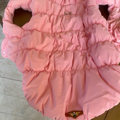 Hundebeklædning, Dogs Creek, Den er købt for stor og nu har hunden tabt sig, så den er alt for stor. Brugt få gange. Det er en regnjakke. Måler ca 49 cm fra halsen til bunden. Længden altså. 40 cm på tværs.52 på tværs ved snipperne ned på benet.