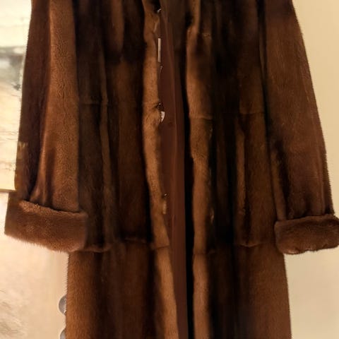Frakke, str. 42, Sten Bergström, Fantastisk minkpels i bedste kvalitet, brugt meget sparsomt. Størrelsen svarer til S/M.