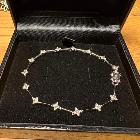 Armlænke, guld, 14 karat guld – hvidguld armlænke, Virkelig Smuk og Feminin 14 Karat Secondhand Guld Armlænke m. Hvert Andet Led i Satineret Hvidguld og Prydet m. 28 Funklende CZ. Zirkonia.