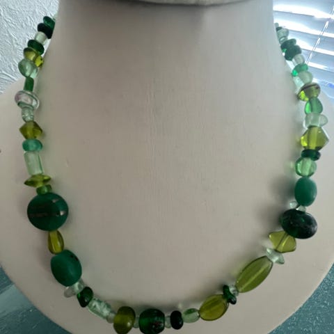 Halskæde, Chunky halsekaede med hjemlavet glass fra Ghana, sten, ben, koral, og porcelain perler..